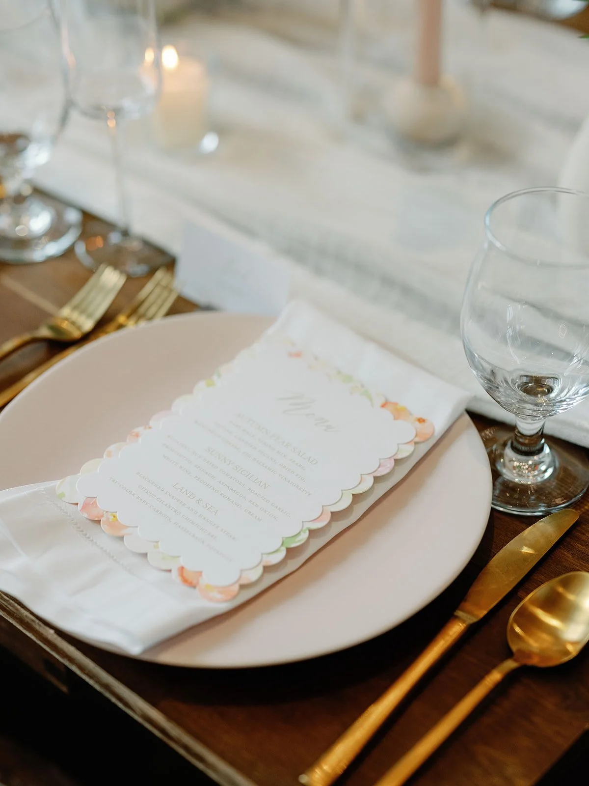 Our day-of paper goods, including menus, place cards, cocktail napkins, and ceremony programs, are crafted to elevate the sophistication of your wedding. Each piece is designed to seamlessly integrate with your overall theme, ensuring a cohesive and memorable experience for your guests. Tying in elements from your invitations and signage, we craft pieces that your guests will be impressed by as we keep your day cohesive from start to finish.
