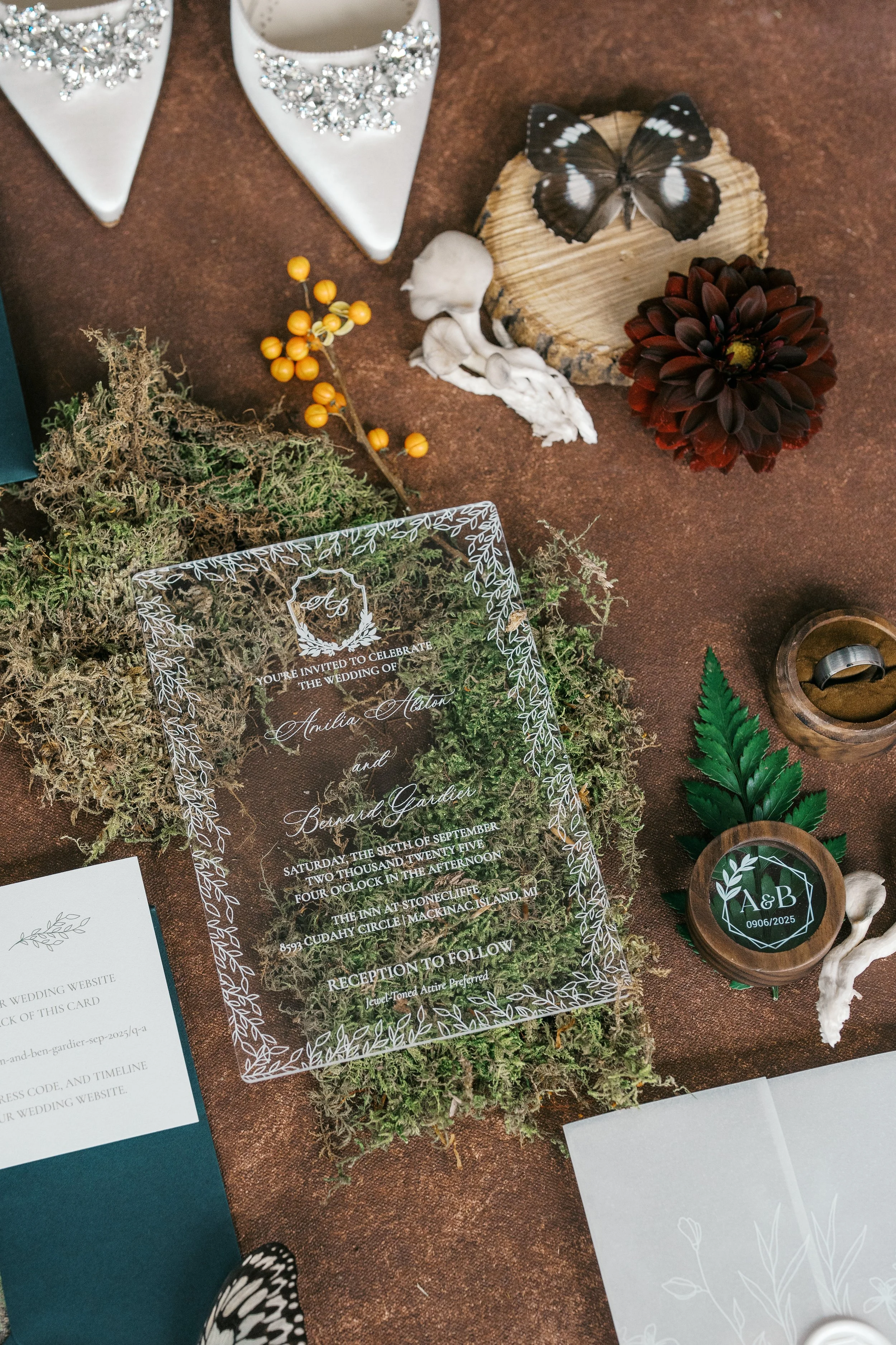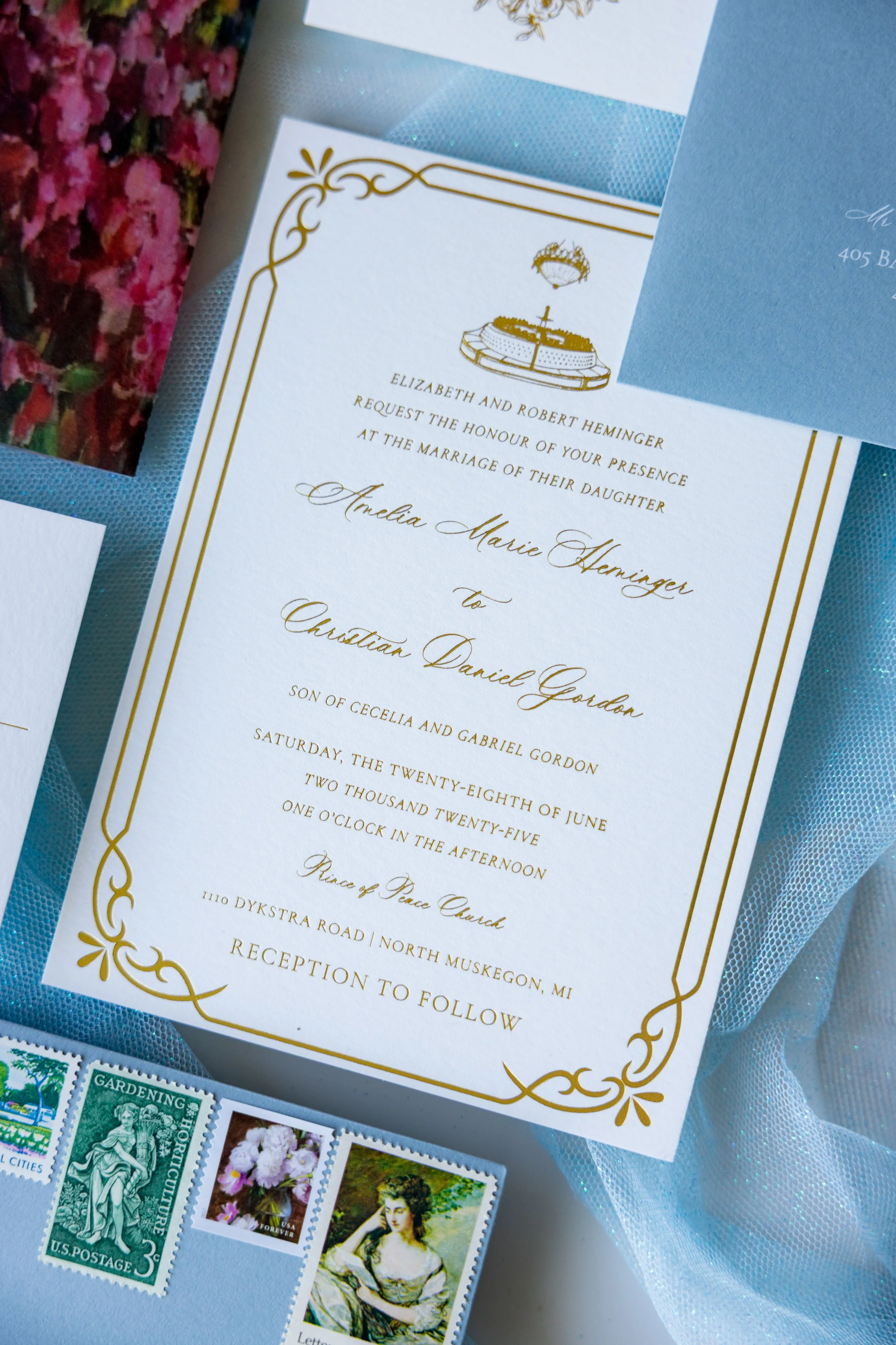 We create a cohesive and heirloom-quality invitation suite tailored to your vision, from selecting paper types and colors, to incorporating embellishments. Our comprehensive service includes expert guidance on etiquette, meticulous hand assembly, and sourcing the perfect postage to tie it all together.